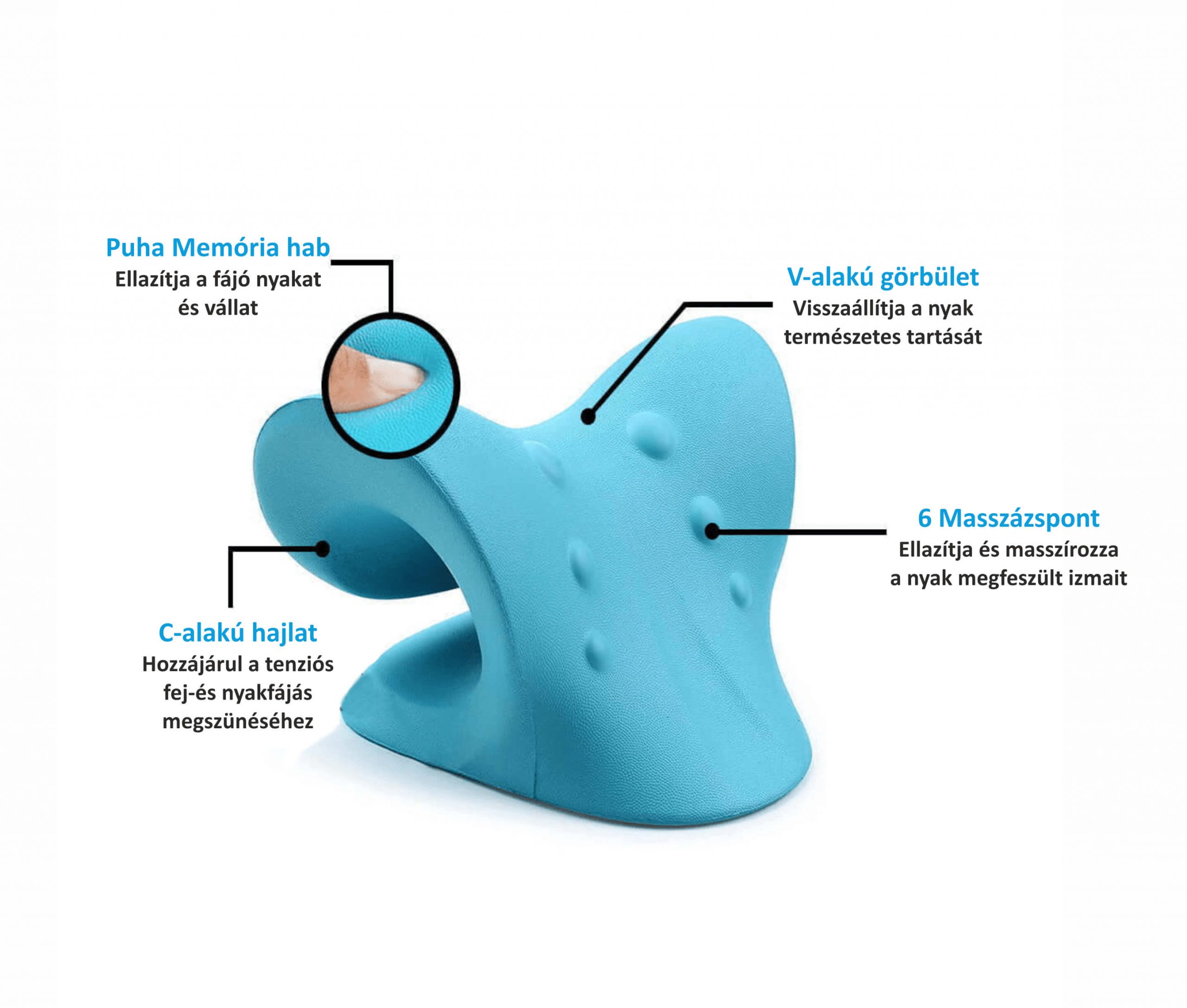 Ergonomikus kialakításának, a puha memóriahabnak és a 6 db masszázspontnak köszönhetően dekompresszálja a csigolyákat és javítja a gerincen keresztüli véráramlást és mindezt akár otthona kényelméből.